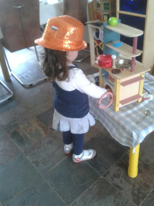 Samen een oranjegebakje eten, naar de prinsesjes en de nieuwe koningin op televisie kijken en natuurlijk ook spelen. Er werd een waar koningsmaal bereid.