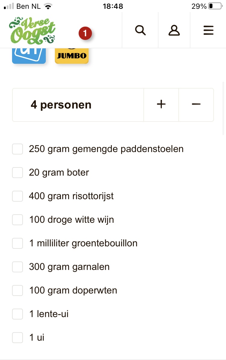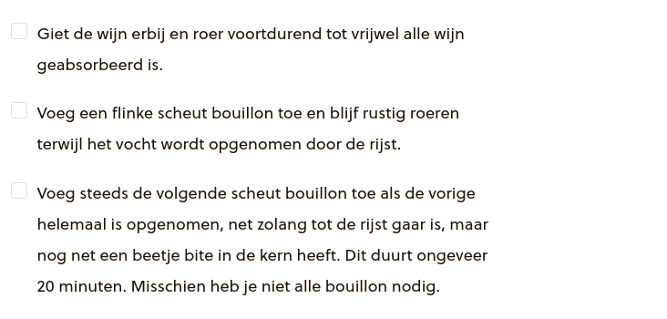 Het duurt even voor die 100 wijn geabsorbeerd is hoor, en een flinke scheut bouillon van die 1 milliliter valt ook niet echt mee. Je hebt misschien niet alle bouillon nodig staat er ook nog!