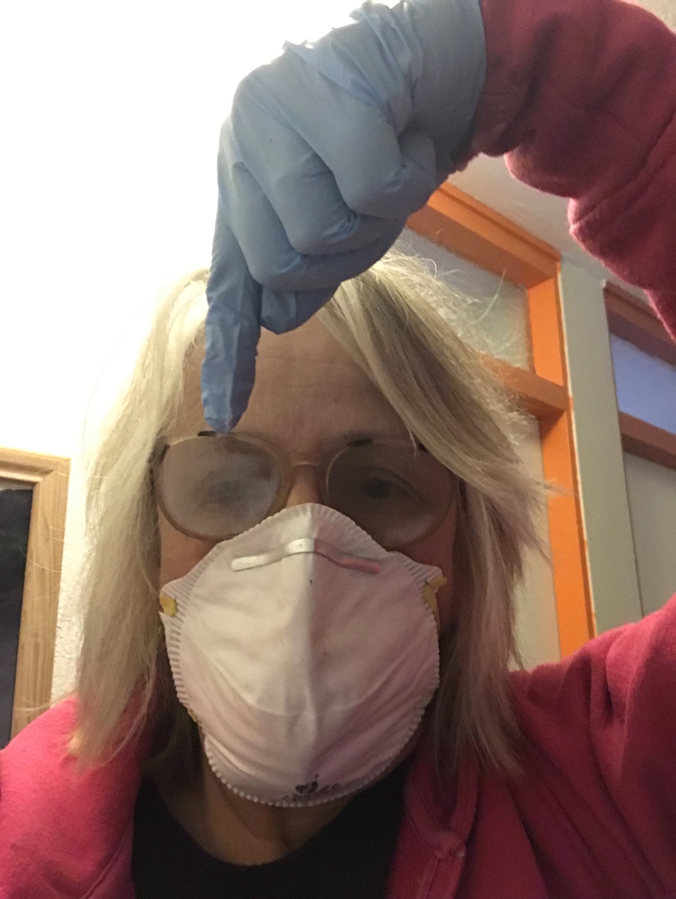 Ik was zo blij dat het goed geholpen had om de ergste bruine vlekken eruit te trekken. De stof was immers veel te kwetsbaar om het te poetsen of erover heen te wrijven.