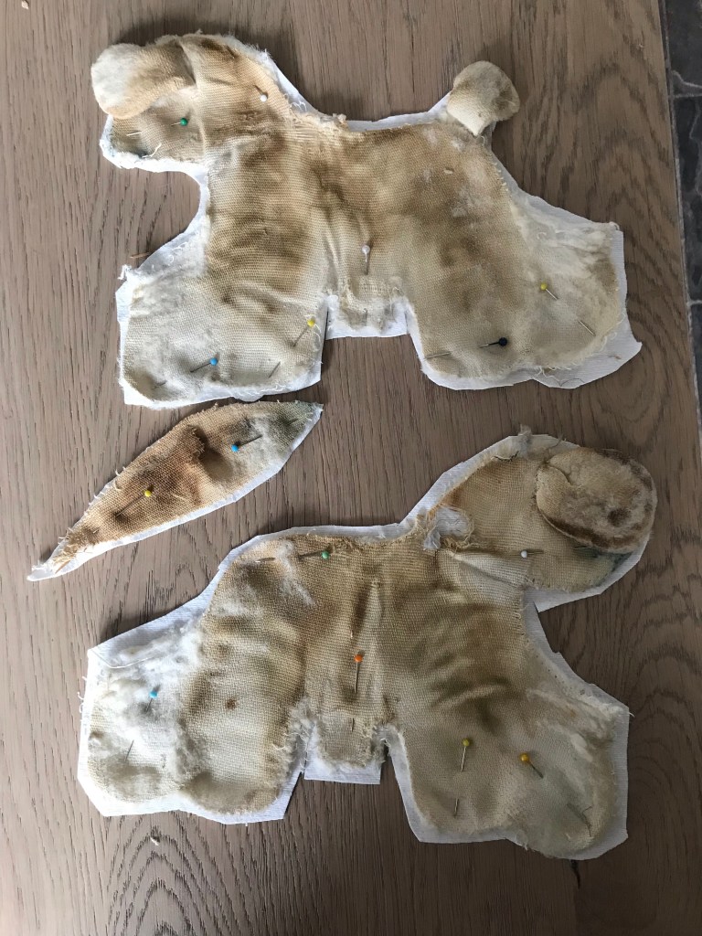 Toen ik de onderdelen los had, heb ik er een patroontje van getekend, misschien dat ik ooit nog een nieuw exemplaar maak van pluche.