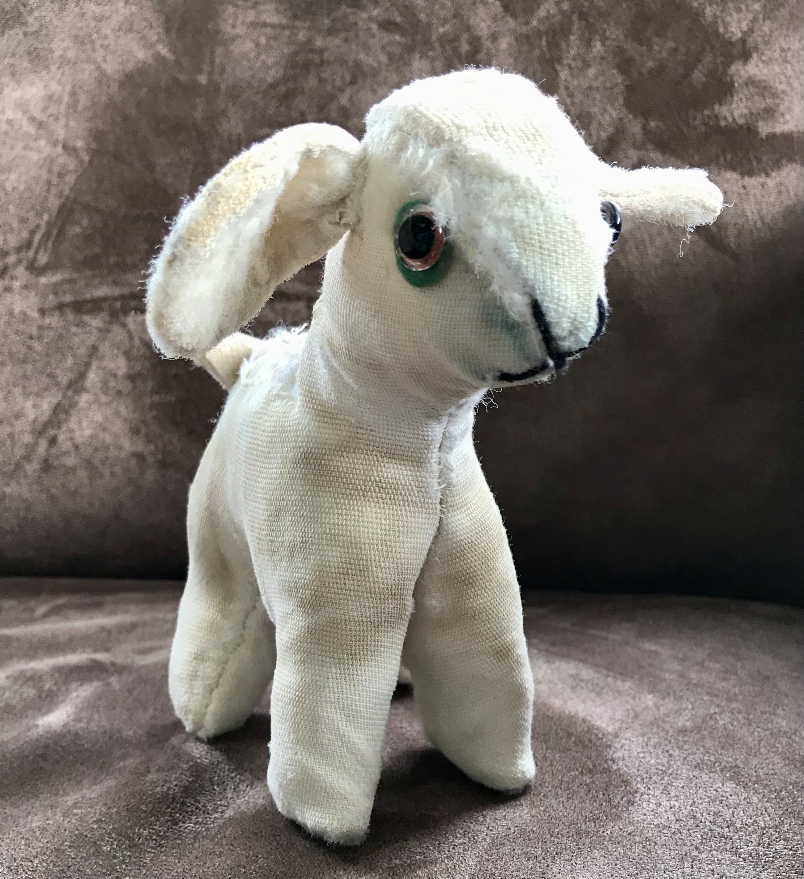 Gelukkig heb ik, toen ik 40 jaar geleden mijn ouderlijk huis verliet, zelf mijn dierbaarste speelgoed meegenomen. Waaronder mijn knuffellammetje, hoe oud, vies en gaar hij toen al was.
