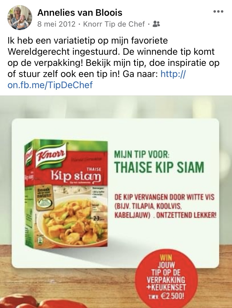 Wacht, even terug in de tijd.Twaalf jaar geleden deed ik mee aan een wedstrijd van Knorr Wereldgerechten: Tip de Chef.