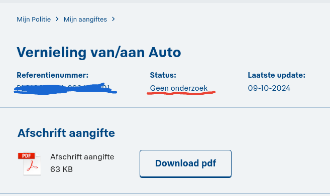 Ik snap dat dit geen prioriteit heeft, ik snap dat de politie ook geen overvloed aan personeel heeft. Maar gewoon helemaal niks verder? Niet eens een gesprekje, een vraag om tips, wat dan ook?