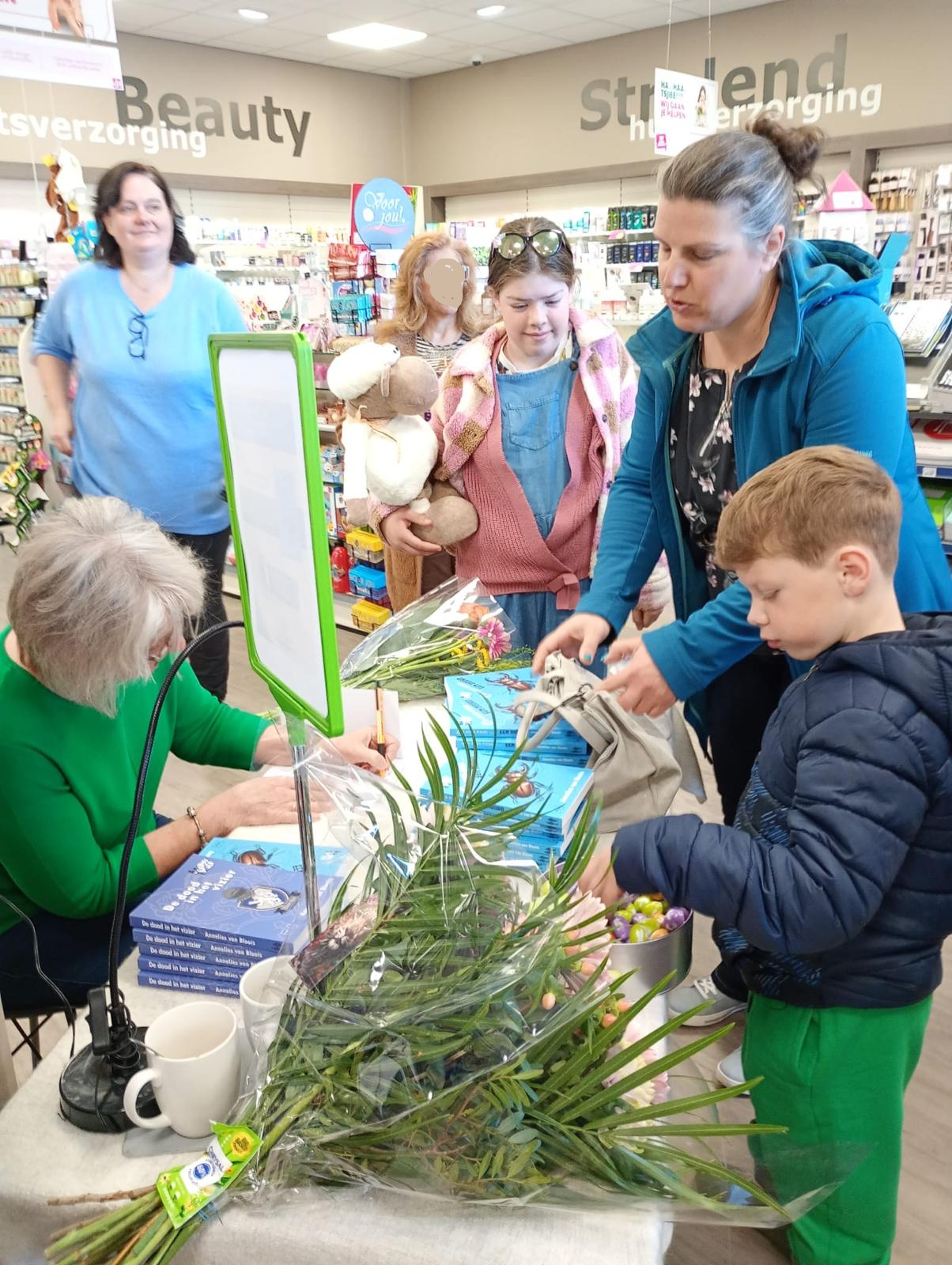 Daarna mocht ik boeken gaan signeren en op verzoek er iets persoonlijks inschrijven. Aan dat tafeltje, ik voelde me een pro! Ook werd ik nog verwend met bloemen en cadeautjes, zo lief. Zoals ik als zei: het was een feestje! De hele dag loop ik nog op wolkjes. Deze bijzondere ervaring vergeet ik nooit meer.