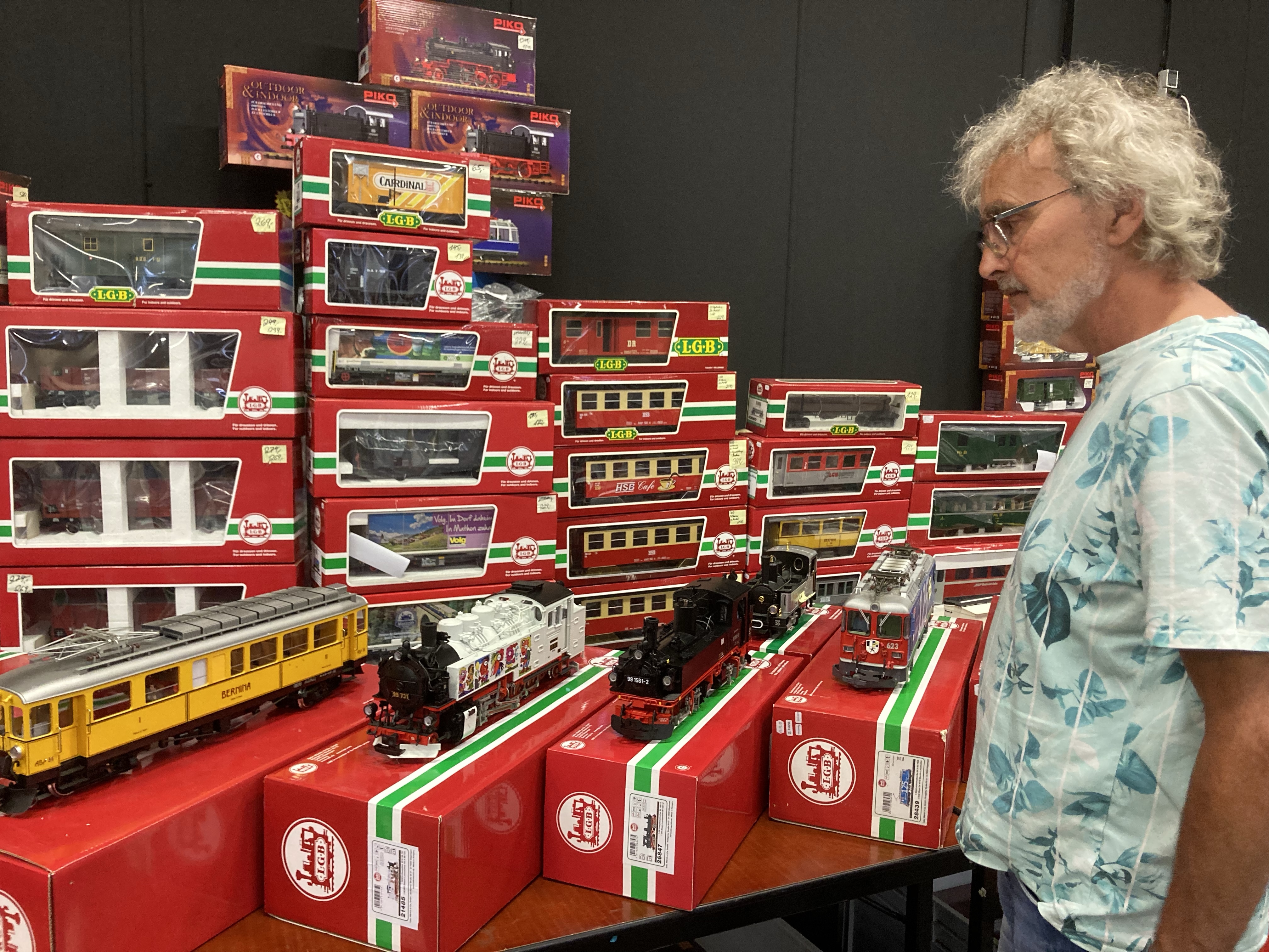 Bert was als een kind in een snoepwinkel, hij liep stralend van kraam naar kraam. Er was best veel aanbod van de grotere schaal modeltreinen en rails waar hij mee werkt.